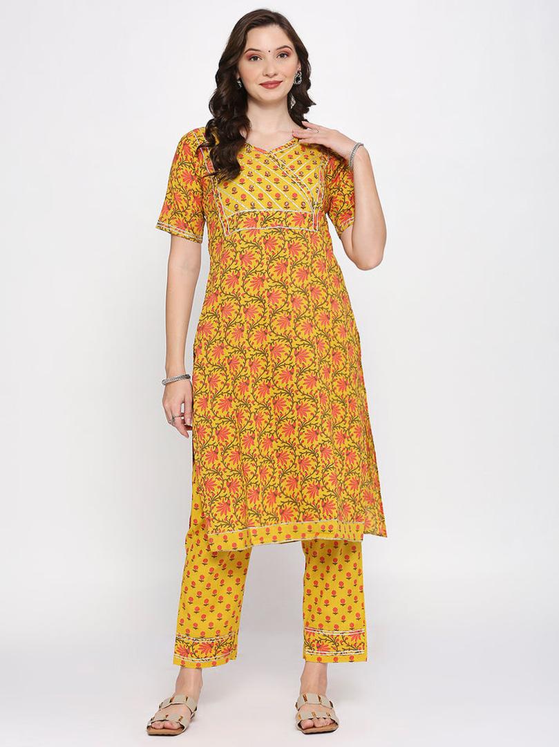 Vastramay Men's Mustard Cotton Blend Pathani Kurta