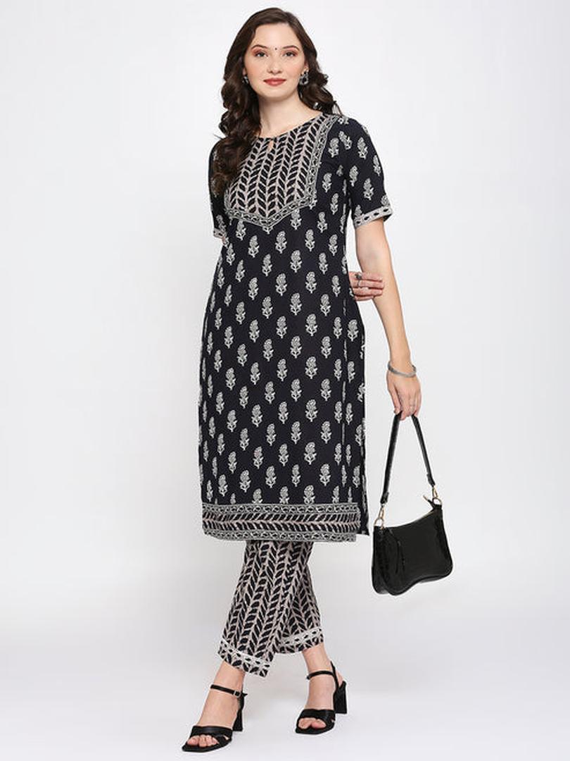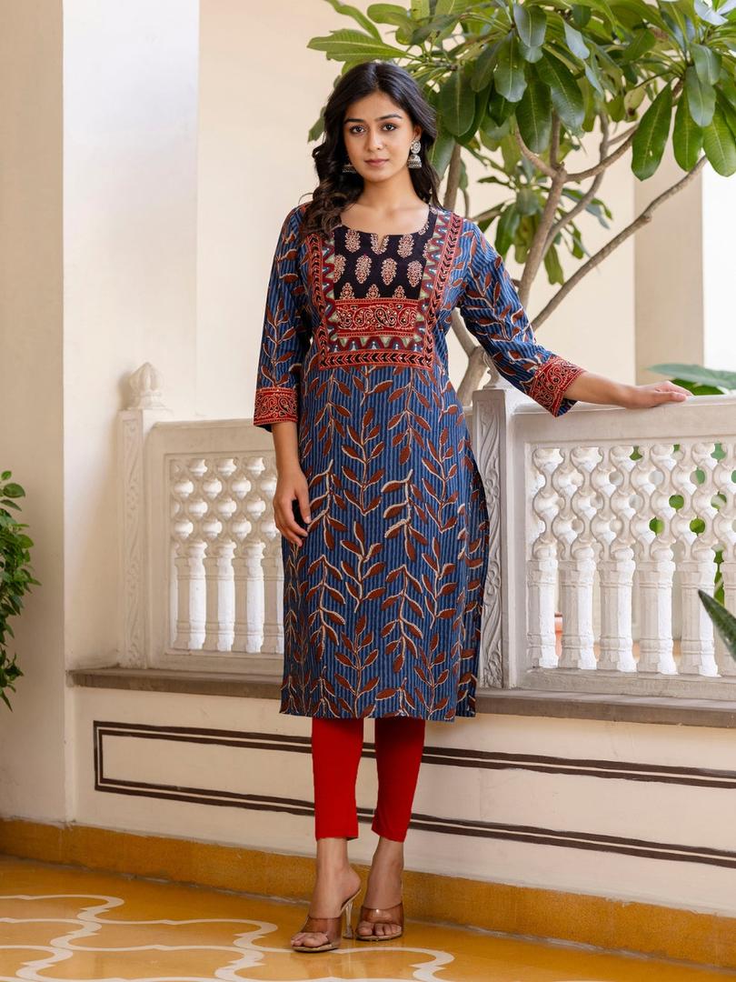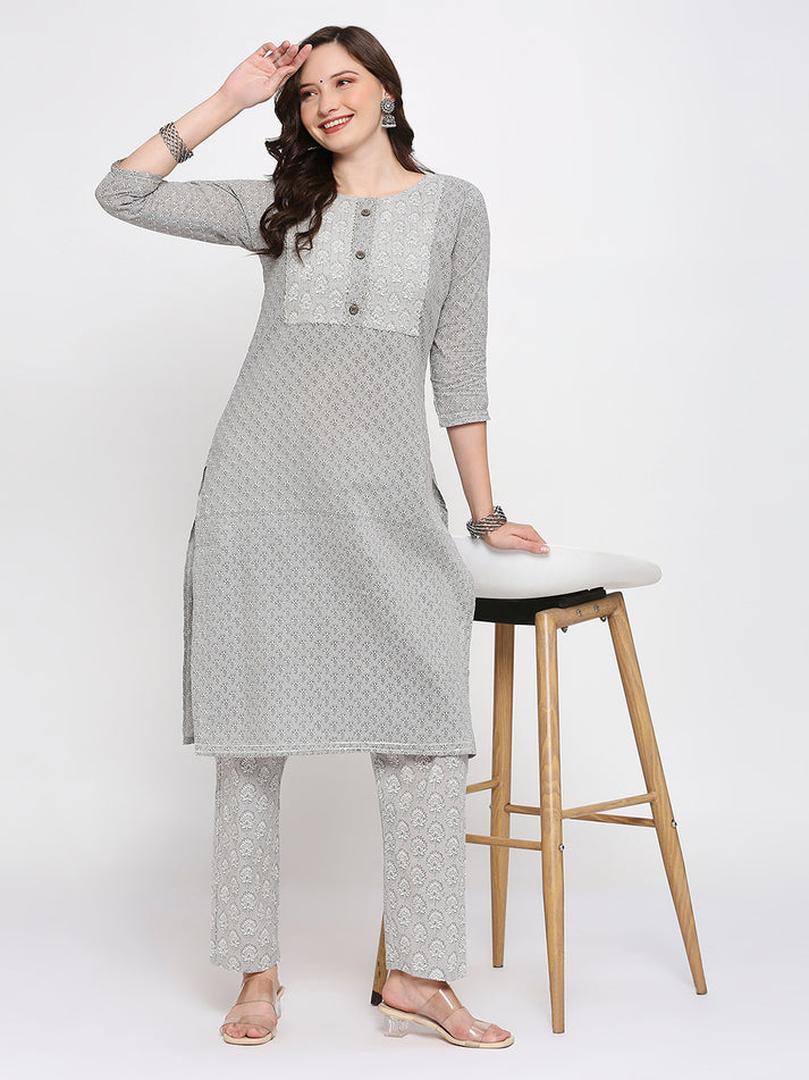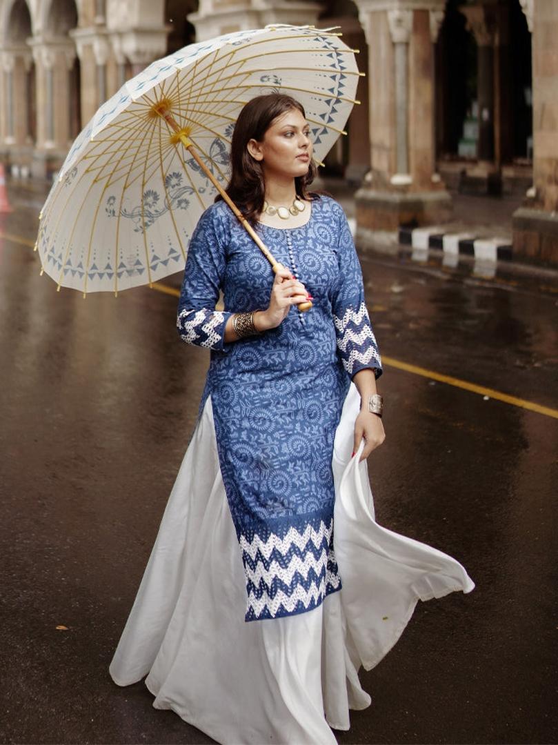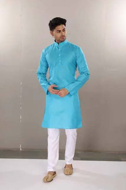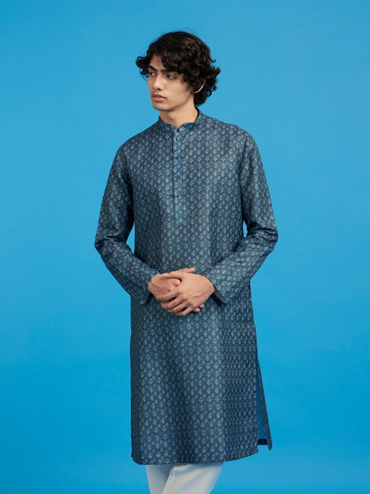 Diwas By Manyavar Glistening Greyish Blue Cotton Kurta for Men