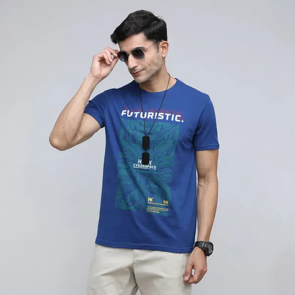 Indo Cotton Bio Washed Round Neck Half Sleeve Printed T-Shirt